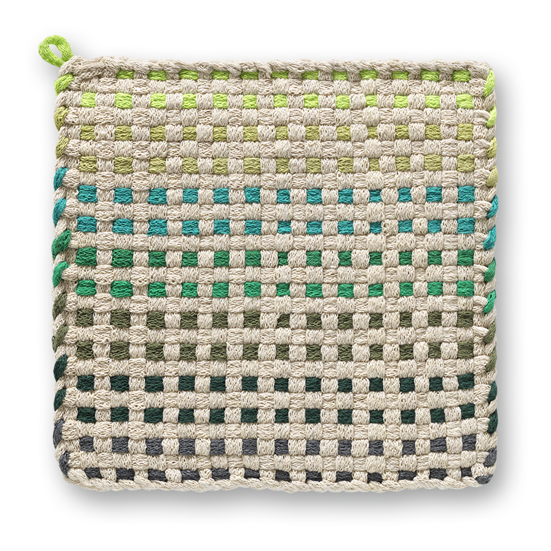 Our sturdy Potholders are made with high quality cotton. All materials are made in USA. Each one is handcrafted in Mexico and inspected for quality. Our Potholders are available in a variety of patterns in assorted Bright, Pastel and Earth-tone colors.