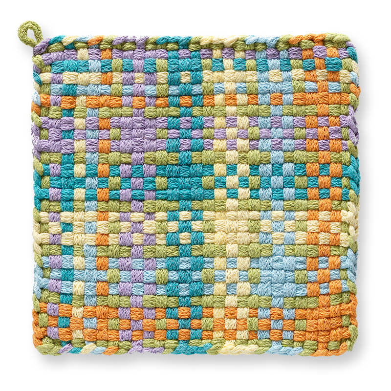 Our sturdy Potholders are made with high quality cotton. All materials are made in USA. Each one is handcrafted in Mexico and inspected for quality. Our Potholders are available in a variety of patterns in assorted Bright, Pastel and Earth-tone colors.