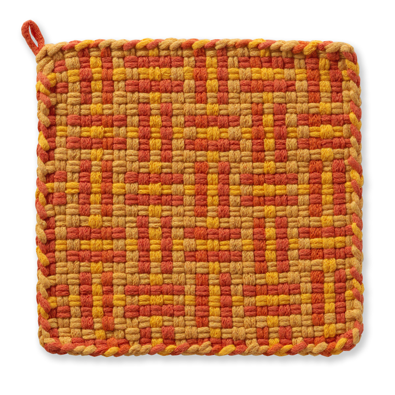 Our sturdy Potholders are made with high quality cotton. All materials are made in USA. Each one is handcrafted in Mexico and inspected for quality. Our Potholders are available in a variety of patterns in assorted Bright, Pastel and Earth-tone colors.
